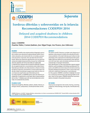 Sorderas diferidas y sobrevenidas en la infancia: Recomendaciones CODEPEH 2014 = Delayed and acquired deafness in children: 2014 CODEPEH Recommendations / CODEPEH (Faustino Núñez, Carmen Jáudenes, José Miguel Sequí, Ana Vivanco, José Zubicaray)