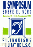 III Symposium sobre el Sord : bilingüisme, utilitat del L.S.C. : [Barcelona, 19 i 20 de novembre de 1993] / organi[t]zació: Centre Recreatiu Cultural de Sords de Barcelona